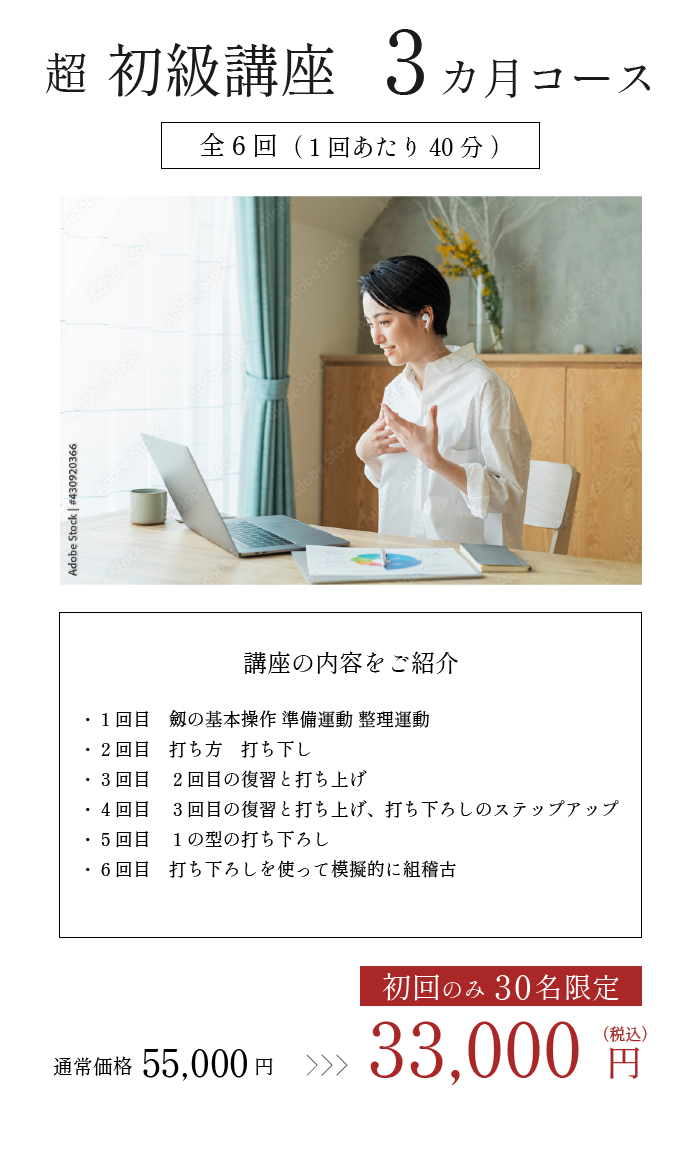 道場に来れない、近くにない、初めてだし皆と一緒にするのはちょっと…という方でも、大丈夫。